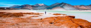 Wüste, Mondtal und Geysire: Dein Panorama für die nächsten Tage. Du fliegst nach Calama und dann geht es dorthin, wo du wirklich hinwillst: In das charmante Wüstendorf San Pedro de Atacama. Wüstenflair, Brauntöne in allen Schattierungen kombinieren sich hier aufs Vorzüglichste mit netten Cafes, Kneipen, Restaurants und kleinen Geschäften, wo du das eine oder andere Kunsthandwerk erwerben kannst. Vor der Abenddämmerung fährst du ins Valle de la Luna, das Mondtal, um den Sonnenuntergang in dieser bizarren mondähnlichen Landschaft mit ihren leuchtenden Farben zu erleben.