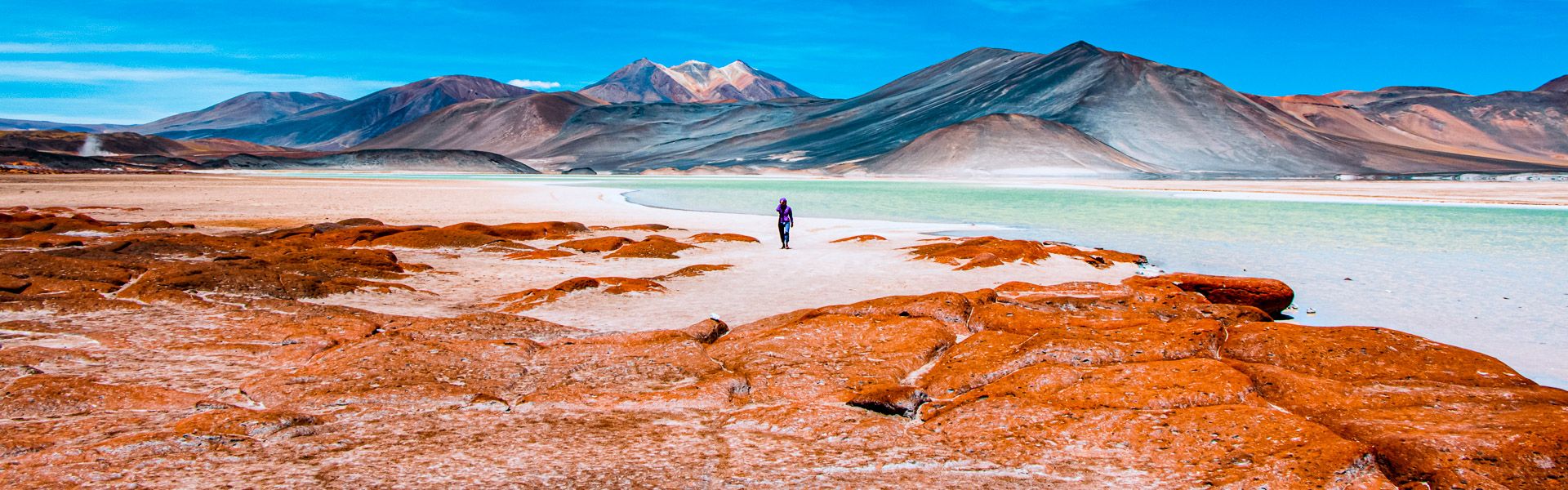 Ein weiteres Highlight: die Geysire von El Tatio. Deren Aktivität ist in den Morgenstunden besonders gut zu erkennen und deshalb heißt es früh aufstehen, denn in mehr als 4.300 Metern Höhe schießen die Fontänen zischend in die Luft. Danach gibt es die Möglichkeit für ein Bad in einem der natürlichen Becken mit Wasser aus den heißen Quellen. Gegen Mittag geht es zurück nach San Pedro und am späten Nachmittag schließlich zur Laguna Tebinquinche, einem kleinen Salzsee in der Wüstenlandschaft. Im chilenischen Sommer ziert eine weiße Salzkruste den Rand der Lagune. Die Draufgabe: Eine atemberaubende Aussicht auf den Vulkan Licancabur und die umgebene Wüste. Beobachte beim Spaziergang um die Lagune verschiedenste Vogelarten in ihrer natürlichen Umgebung, mit etwas Glück auch Flamingos. Den krönenden Abschluss deiner Zeit in San Pedro bildet der Sonnenuntergang vor der grandiosen Naturkulisse.