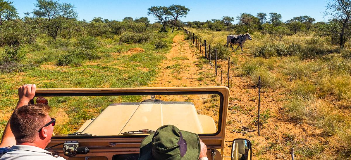 Typisch namibisch: Gleich morgens startest du direkt vor deiner Haustür zu einer zweistündigen, geführten Wanderung durch die Buschsavanne. Während du das weitläufige Farmgelände mit seinen vielen Akazien entdeckst, erfährst du von deinem lokalen Reiseleiter oder deiner Reiseleiterin viel Wissenswertes über einheimische Pflanzen und Bäume. Wenn die Sonne ihre wärmsten Strahlen schickt, entspannst du dich am besten in deiner Unterkunft. Während einer etwa 1½-stündigen nachmittäglichen Rundfahrt über das Farmgelände erfährst du so einiges über das landestypische Farmleben und auch den Anbau von Gemüse, welches für den Eigenbedarf genutzt wird und natürlich in der leckeren, typischen Farmküche Verwendung findet. Überdies wird Luzerne angebaut, denn auch die Farmtiere sollen genug zu Fressen haben. Danach geht es zu den Nguni-Rindern, die aufgrund der vielfältigen Farben und Muster ihres Felles unverwechselbar sind. Wusstest du, dass diese Tiere in Namibia vor allem für ihre Widerstandsfähigkeit bekannt sind? Hans Sohrada erzählt Geschichten aus seinem Alltag und lässt dich gern an seinem Wissen über den Alltag auf einer Farm teilhaben.