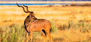 Zusammen mit deiner Reiseleitung und einem fachkundigen Ranger oder Rangerin erkundest du vormittags den afrikanischen Busch per pedes. Während der etwa 1½-stündigen Safari zu Fuß durch den Wildpark siehst du verschiedene Vertreter der namibischen Pflanzen- und Tierwelt wie Warzenschwein, Schakal und Pavian. In den hohen Bäumen präsentiert sich eine vielfältige Vogelwelt. Die Mittagszeit verbringst du in der Unterkunft, bevor es am Nachmittag auf eine 2½-stündige Safari im offenen Geländewagen durch den privaten Wildpark geht. Mit etwas Glück zeigen sich dir verschiedenste Antilopenarten vom mächtigen Eland über Kudu und Kronenducker bis hin zum winzigen Steinböckchen.