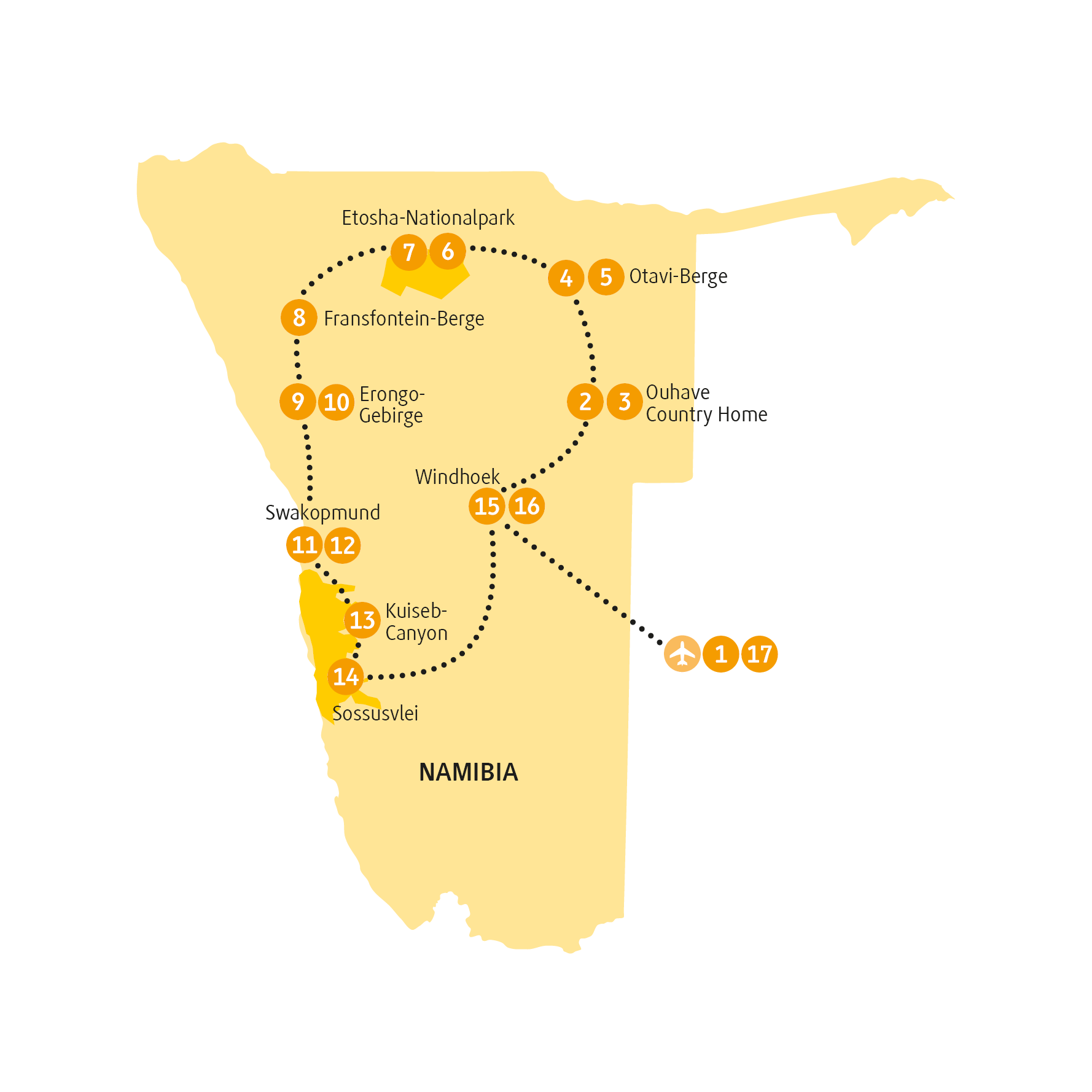 Heute startet dein Flieger nach Namibia, ins Land der unendlichen Weite.