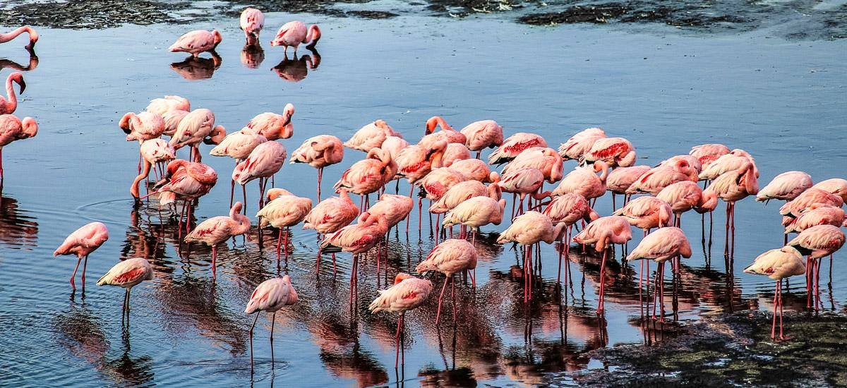 Nach dem Aufstehen steht wieder der See auf dem Programm. Staunen, knipsen, genießen – und das alles bei einem Spaziergang. Das rotbraune Wasser, besser gesagt die Algen darin sind die Nahrungsgrundlage der Flamingos, und so ist die Wahrscheinlichkeit nicht gering, dass du genau diese im Dutzend hier finden wirst. Ein roter See mit weißer Umrandung und vielen pinkfarbenen Zweibeinern, mit etwas Glück wird dir genau dieses Bild präsentiert. Nach dem Frühstück erwartet dich ein Ausflug in eine kleine Schlucht. Zu Fuß folgst du einem der Zuflüsse des Natronsees. Zunächst auf einem ausgebauten Pfad am Ufer entlang, aber am Ende geht es auch ein paarmal durch den Fluss. Als Belohnung erwartet dich ein prächtiger Wasserfall, der zu einer kühlen Dusche einlädt. Zurück im Camp heißt es dann einmal die Seele baumeln lassen. Mit Blick auf den Natronsee und den heiligen Vulkanberg Ol Doinyo Lengai kannst du in ein erfrischendes Bächlein springen, in dem es sogar eine kostenlose Fischpediküre gibt. Ein wahrhaft kitzeliges Vergnügen!