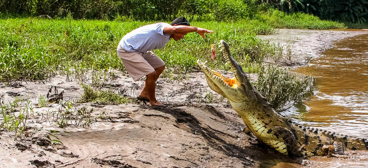 Am Río Tárcoles gehst du an Bord eines Bootes und erkundest den Mangrovenwald. Zahlreiche Wasservögel wie Reiher, Ibisse, Wasserhühner, aber auch Brüllaffen, Klammeraffen und Kapuzineräffchen, Leguane und Fledermäuse triffst du hier an. Und auf den Sandbänken sonnen sich oft Krokodile. Ein kräftiges Mittagessen in einem einfachen Restaurant am Fluss, und dann geht es weiter in Richtung Norden in die grünen Berge von Monteverde. Dort erlebst du eine etwa anderthalbstündige Abendwanderung durch den Nebelwald und beobachtest die nachtaktiven Tiere. Los geht’s in der Dämmerung.