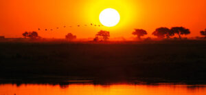 Ein ereignisreicher Tag steht dir bevor. Zu Lande, zu Wasser und in der Luft. In der Frühe startest du im offenen Geländewagen in Richtung Moremi-Wildreservat. Das Reservat ist bekannt für Leoparden und den besonders stark bedrohten Afrikanischen Wildhund. Gegen Mittag erreichst du Xakanaxa, welches sich direkt im Moremi-Wildreservat befindet. Dort wechselst du kurze Zeit später in ein Boot über und schipperst für etwa ein- bis eineinhalb Stunden durch das weitverzweigte Wasserstraßen-Labyrinth. Die artenreiche Vogelwelt beherrscht die akustische Kulisse der Umgebung und setzt Farbtupfer in der Landschaft. Hier herrschen ideale Brutbedingungen. Vogelfans kommen heute voll auf ihre Kosten. Immer wieder eröffnen sich deine Blicke auf freie Flächen und Ufer, wo sich Krokodile sonnen und Flusspferde wie auch Elefanten grasen. Das offene Wasser zieht auch Raubvögel wie Schreiseeadler und Gaukler an. Im Anschluss an die Bootsafari wartet auf der Xakanaxa-Startbahn bereits ein Kleinflugzeug auf dich. Der in etwa zwanzigminütige Flug führt dich über Teile des Okavango-Deltas bis zum örtlichen Flughafen in Maun. Es ist ein ganz besonderes Erlebnis, diese Region aus der Vogelperspektive zu betrachten. Nach der Landung in Maun fährst du zurück zur Lodge. Vielleicht hast du Glück und der Himmel im Delta verabschiedet sich mit einem wunderschönen Sonnenuntergang. Botswanische Gemütlichkeit – besser wird es nicht!