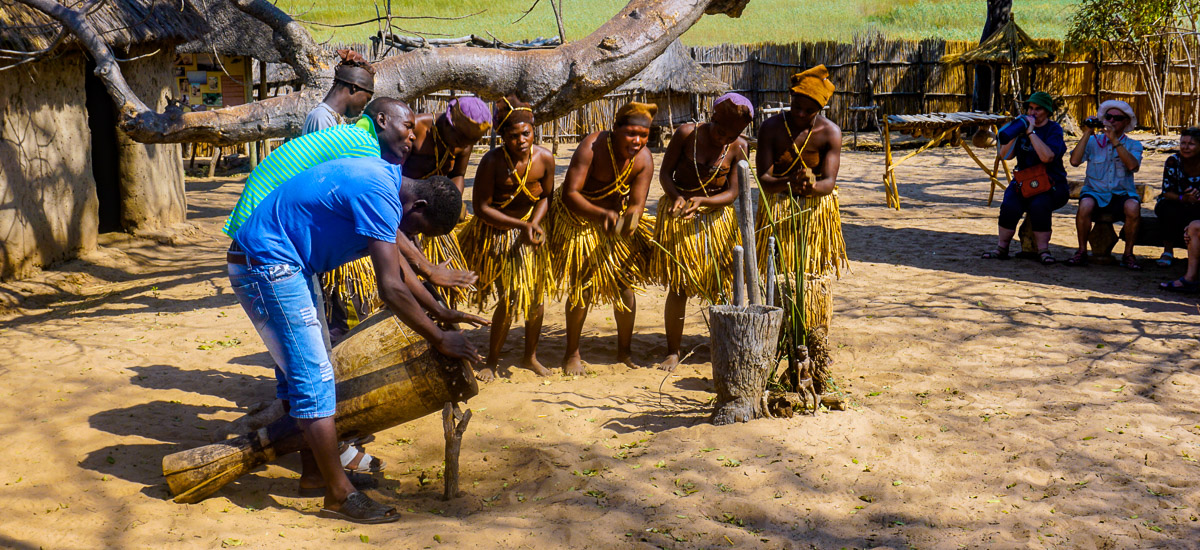 Knappe 20 Kilometer nördlich von Kongola befindet sich das Mafwe Living Museum, wo du in das traditionelle und das heutige Leben dieser Gemeinschaft im Caprivi eintauchst. Die Mafwe sprühen vor Temperament, und es macht Spaß, nicht nur zuzuschauen, sondern mit ihnen gemeinsam beispielsweise zu tanzen. Nach dieser herzlichen Begegnung fährst du weiter durch den Caprivi-Zipfel zu deiner Lodge. Zum Sonnenuntergang laden wir dich zu einer etwa zweistündigen Bootsfahrt auf dem Okavango ein. Dabei siehst du auch die beeindruckenden Stromschnellen der Popafälle.