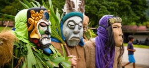 Von den Térraba 3 gibt es nur noch wenige Hundert Angehörige in Costa Rica. Kunst und Kunsthandwerk hält sie am Leben. Vor allem fantastisch bemalte Masken aus Balsaholz, die ihren Ursprung im traditionellen »Tanz der Teufelchen« haben. Heute gibt es zwölf Térraba mehr, das sind wir. Fest integriert in das Dorfleben, aktiv im Alltag eingespannt und eingeladen dazubleiben. Zum Essen, was immer die indigene Küche auf den Tisch bringen wird, und über Nacht, wie es sich für gute Gastfreundschaft gehört.