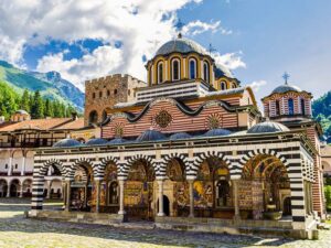Nach dem Frühstück verlässt du Sofia. Du wirst noch eine Weile von den Ausläufern des Vitoscha-Gebirges begleitet, während die Umgebung ländlicher wird. Bald säumen Laub- und Nadelwälder die sich windende Straße und geben immer wieder Blicke auf schroffe Felsen frei. Auf dem Territorium des Rila-Nationalparks erheben sich über hundert Gipfel, die mindestens 2.000 Meter über dem Meeresspiegel liegen. Und dann erstrahlt es: das Rila-Kloster – ohne Zweifel das Wahrzeichen Bulgariens und UNESCO-Weltkulturerbe. Die Pracht und die Mystik erspürst du auf einem Rundgang durch den imposanten Gebäudekomplex. Achte auf die kostbaren Schnitzereien und aufwändigen Wandmalereien in den Gästesälen! Im Wirtschaftstrakt mit seinem riesigen Backofen und der Wassermühle wird sehr gut veranschaulicht, wie die Versorgung der Priester und Gäste in früheren Zeiten funktionierte. Am frühen Nachmittag fährst du weiter in Richtung Rhodopengebirge. Im Dorf Belitsa bist du zu Gast im Park für gerettete Bären. Das Projekt »Vier Pfoten« kämpft für den Schutz der ehemaligen Tanzbären Osteuropas und konnte unlängst den Bären Teddy und Riku ein artgerechtes Zuhause geben. Sie genießen hier mit ihren Artgenossen ihr neues Leben in (fast) freier Wildbahn. Bansko, dein heutiges Ziel, ist nicht nur ein bekannter Wintersportort, er ist auch berühmt für seine fantastische Küche! Nach einem Rundgang durch den Ort hast du dir dein Abendessen redlich verdient. In einer traditionellen bulgarischen Taverne werden dir zur Krönung des Tages Köstlichkeiten der Region serviert.