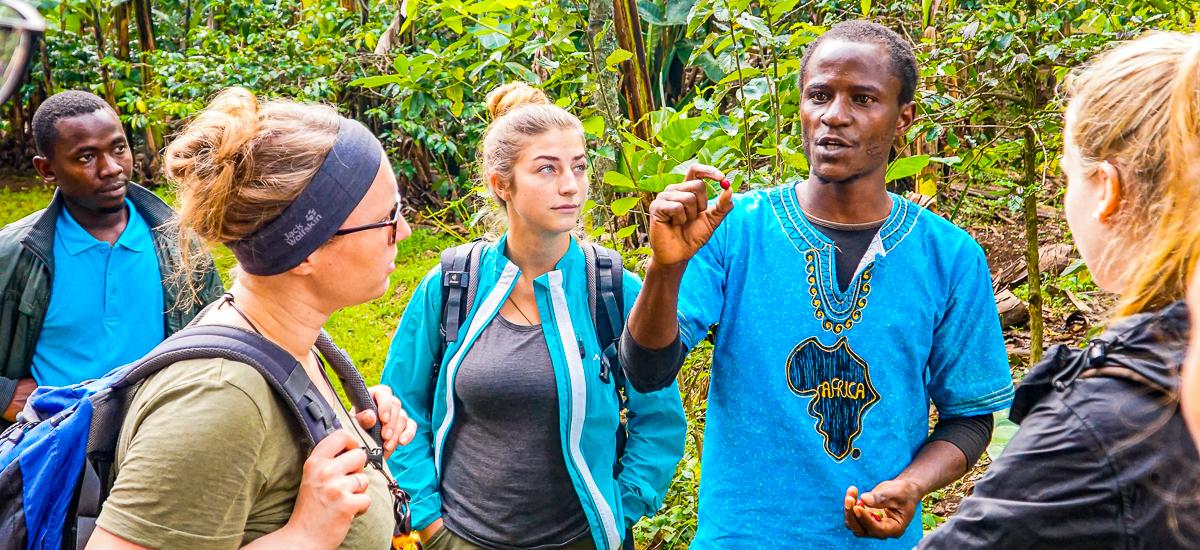 Ist das eine Ansage? Ouvertüre in Moshi 1 mit Logenplatz zum Kilimanjaro. Der höchste Berg Afrikas grüßt wie immer mit einem Krönchen aus Eis. Rosarot, wenn ihn die Abendsonne anstrahlt. Unten, zu seinen Füßen, versagt jede herkömmliche Vorstellung von Botanik. Erika, bei uns ein niederes Heidekraut, sprießt hier zehn Meter in die Höhe. Das gemeine Kreuzkraut bringt es auf sechs Meter. Ein Großteil der urwaldartigen Pflanzen trägt das Vorwort »Riesen«. Womit der erste Eindruck deiner Reise treffsicher beschrieben wäre: einfach riesig. Der zweite liefert die Bestätigung dafür, denn hinter dem Marangu-Tor zum Kilimanjaro-Nationalpark 2 geht’s weiter auf unserer Dschungel-Wanderung ins fulminante Unbekannte. Der dritte ist dann köstlich, denn nach der Wanderung kochen wir gemeinsam mit Schülerinnen tansanische Hausmannskost.