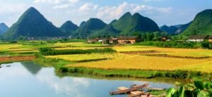 Der Tag beginnt mit einer Fahrradfahrt durch den idyllischen Ort und die beeindruckende Umgebung. Vorbei an Wasserbüffeln und durch ruhige Dorfgassen, erhältst du einen Eindruck vom ländlichen Leben in China. Wasserbüffel, die genüsslich in den Feldern weiden und Bauern, die Reis am Wegesrand trocknen, sind typische Begegnungen während der entspannten Fahrradtour. Am Nachmittag treibst du mit einem Bambusfloß etwa eineinhalb Stunden gemütlich und ganz traditionell auf dem Yulong-Fluss durch eine einzigartige Landschaft, vorbei an den bizarren Karstkegelbergen Guilins.