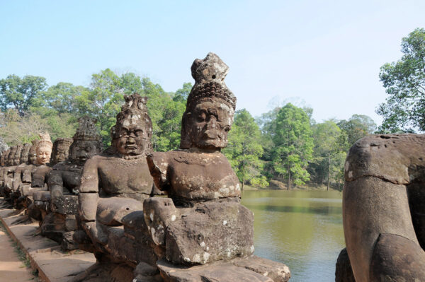 Sie fliegen nach Siem Reap, dem Tor zu den Geheimnissen von Angkor. Die Tempelstadt wurde von der UNESCO zum Weltkulturerbe erklärt. Mit lokalen Tuk Tuks erreichen wir landestypisch die ehemals »Große Stadt« Angkor Thom. Umgeben von einer langen Mauer und einem tiefen Graben, birgt diese Stadt Angkors beliebteste Besichtigungspunkte. Im Zentrum befinden sich die wichtigsten Tempelanlagen, wie der Bayon, der Tempelberg des Königs Jayavarman VII., der durch seine lächelnden Gesichtertürme bekannt wurde. Die Elefantenterrasse war Teil der großen Audienzhalle des Königs und diente als Aussichtsplattform für Veranstaltungen. Der Tempel Ta Prohm hingegen beeindruckt nicht nur durch seine Größe, sondern vor allem durch seinen malerischen Anblick: Würgefeigen mit gewaltigen Wurzeln umschlingen das Bauwerk. Vom Tempelberg Ta Keo genießen wir einen wunderbaren Blick über die Tempelanlage.