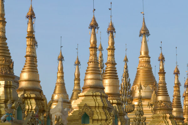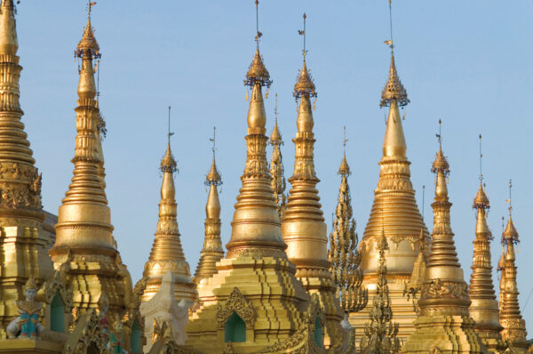 Durch eines der fruchtbarsten Reisanbaugebiete des Landes fahren wir nach Bago, wo wir die Shwemawdaw-Pagode und den liegenden Buddha Shwethalyaung besichtigen. Dann geht es weiter zum Höhepunkt des Tages nach Kyaikhto. Thronend auf einem Berg erwartet uns eine der heiligsten buddhistischen Stätten Myanmars: der legendäre Goldene Felsen. Vom Fuße des Berges fahren wir mit sehr einfachen, ortsüblichen Fahrzeugen zur goldenen Felspagode. Der grandiose Anblick des Stupa auf einem rundum mit Gold belegten Felsen wird uns beeindrucken. 165 km (A)