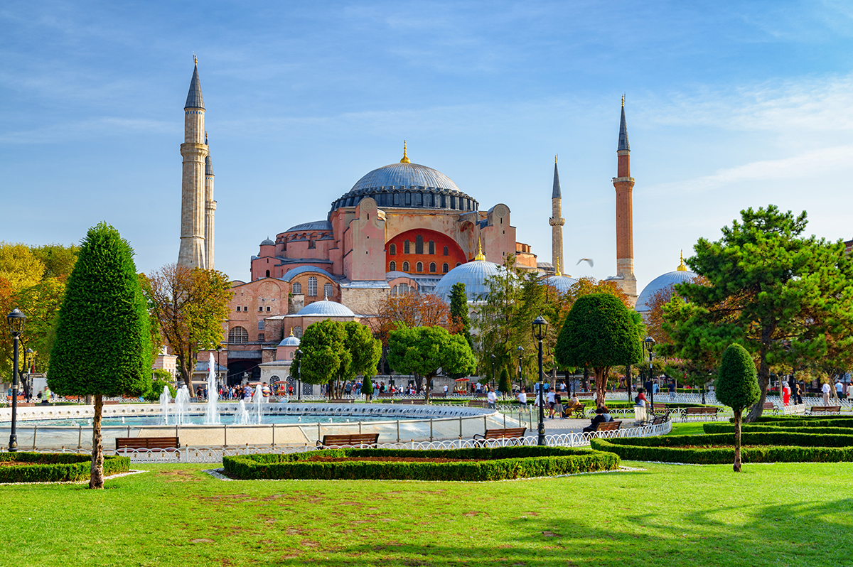 Wir fangen in Istanbul da an, wo alles begann. Unsere Stadtrundfahrt führt zum Hippodrom, wo in der Antike Hunderttausende bei den Pferderennen jubelten. Wir gehen vorbei an den beiden Obelisken und der Schlangensäule aus Delphi, besuchen die Blaue Moschee von außen und erreichen die Hagia Sophia, die weise Mutter der oströmischen Kuppelkirchen. Im Topkapi-Palast wird es osmanisch: Mehr als 450 Jahre war er das politische und kulturelle Zentrum des Reiches. Wir bewundern, was sich in dieser Zeit an wertvollen Exponaten angesammelt hat, bevor wir von der Aussichtsterrasse unseren Blick über das Goldene Horn schweifen lassen. Die Hagia Irene gehört zu den wichtigsten Denkmälern der Architekturgeschichte. Wir schauen sie uns in aller Ruhe an. (F)