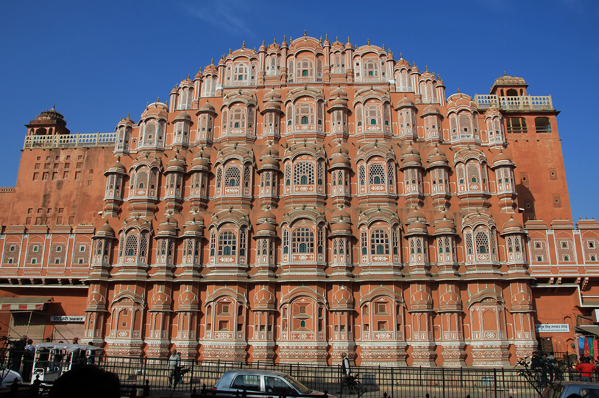 Der Besichtigungstag beginnt mit einem Ausflug zur Festung Amber. Dort besuchen wir die fantastische Palastanlage und bewundern die Aussicht. Später in Jaipur könnte man sich bei einem Fotostopp am Hawa Mahal fragen, ob die Fassade des Palastes der Winde als Kulisse für einen der so beliebten »Bollywood«-Filme errichtet wurde. Das Freilichtobservatorium Jantar Mantar (UNESCO Welterbe) präsentiert sich als weiterer architektonischer Höhepunkt. Abschließend erkunden wir die trubeligen Gassen der Altstadt auf einer Rikschafahrt. 22 km (F, A)