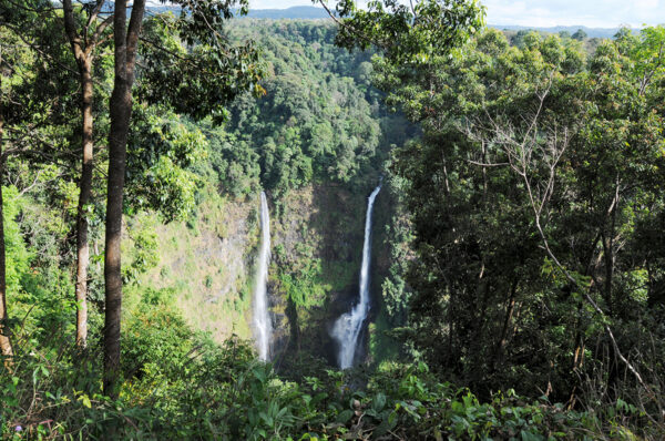 Das Nam Kat Yola-Regenwaldschutzgebiet ist perfekt für eine spannende und abwechslungsreiche Trekkingtour. Der idyllisch gelegene Wasserfall Houay Soum verspricht eine kühle Erfrischung. Badesachen nicht vergessen! Dann geht es weiter durch den dichten Dschungel ─ immer wieder kreuzen kleine Flüsse unseren Weg, die überquert werden wollen. Und es geht auch hoch hinaus! Von Hängebrücken aus ändern wir unseren Blickwinkel und bewundern die Aussicht aus der Höhe der Baumwipfel. (F, M) ca. 5 Std.