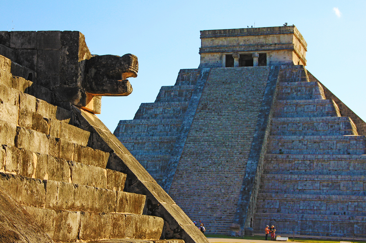 Mit den ersten Sonnenstrahlen erkunden wir die berühmte Mayastätte von Chichén Itzá, zeitweilig das bedeutendste Maya-Zentrum des Nordens. Das Herzstück der Anlage ist die berühmte Pyramide des Kukulkan. Fahrt zum Flughafen Cancún und von dort weiter an den Traumstrand der mexikanischen Karibikküste. (F, A)