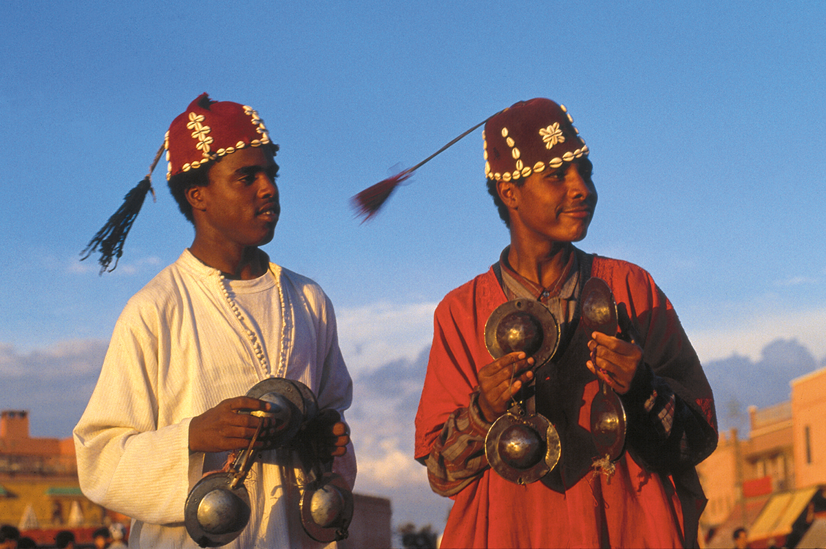 In der alten Hauptstadt stößt man überall auf die bewegte Vergangenheit der Stadt. Wir lassen uns von den Saadier-Gräbern inspirieren, die bis 1917 hinter dicken Mauern im Dornröschenschlaf lagen. Dem Koutoubia-Minarett wird selbstverständlich ein Besuch abgestattet, es ist das einzig vollendete der Almohadenzeit und Wahrzeichen der Stadt. Auf dem Plan steht auch die ehemalige Koranschule Medersa Ben Youssef, einstmals war sie die größte des Maghreb. Heute spürt man: Es ist der Tag vor 1001 Nacht! Der ausführliche Spaziergang durch die Souks mit den Färbergassen und dem Schmiedeviertel wird zum Erlebnis. Der Gauklerplatz Djemaa el Fna, wo Komiker, Märchenerzähler, Akrobaten, Tänzer, Schlangenbeschwörer und Musikanten sich ein Stelldichein geben und sich gegen Gebühr auch gerne fotografieren lassen, wird zum Höhepunkt. (F, A)