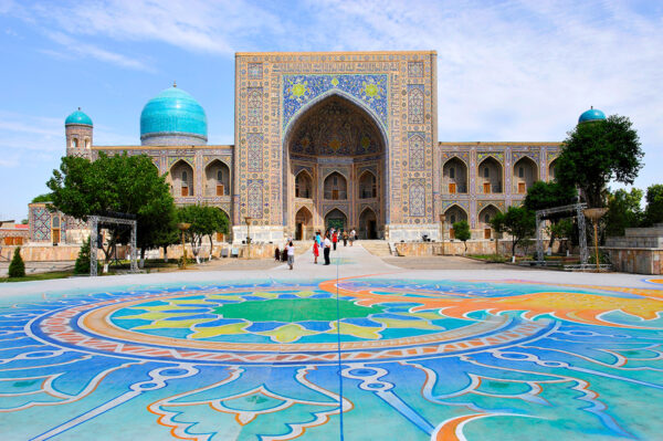 In Samarkand erwartet uns ein Höhepunkt unserer Reise: der Registan-Platz, den wohl berühmtesten Platz Zentralasiens. Der Besuch der drei Medresen, die sich an diesem Ort befinden, wird uns genauso wie Timurs palastartiges Mausoleum Gur-e Amir beeindrucken. Im Museum von Afrosiab und beim angrenzenden Ausgrabungsfeld erhalten wir einen Eindruck vom historischen Samarkand. Im Anschluss fahren wir in das Künstlerdorf Konighil am Rande der Stadt. Hier lernen wir, wie das berühmte Samarkand-Papier in jahrhundertealter Tradition aus den Fasern des Maulbeerbaums, Henna und Rosenwasser hergestellt wird. Zum Sonnenuntergang machen wir einen Abstecher zum Observatorium von Ulug Bek. (F, A)