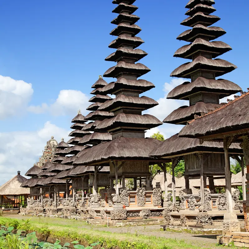 Der freie Vormittag gehört dem Strand - nicht weit vom Hotel entfernt. Dann nimmt uns Wayan mit auf eine erste Entdeckertour: zum Taman-Ayun-Tempel, von einem Wassergraben umgeben. Noch fotogener: Der berühmte Tempel von Tanah Lot° steht auf einem Felsen im Ozean. Hoffentlich spielt der Himmel mit beim perfekten Sonnenuntergang! Zurück in Sanur erwartet uns ein gemeinsames Willkommensdinner mit exotischen Leckereien wie Gado-Gado, Saté & Co. (F, A)