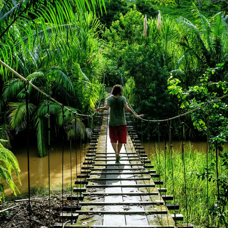 Adrenalinschub am Morgen? Wir wanken über Hängebrücken durch den Nebelwald. Weiche Knie? Ist nur das Schaukeln! Oder der umwerfende Anblick des Nebels, der sich über dem Grün lichtet. Süchtig nach noch mehr Action? Wir haben frei, um uns ins Outdoorleben rund um Monteverde zu stürzen. Césars Tipp: Beim Canopy über die Baumwipfel hinwegsausen - mit seinen 1000 Metern gibt es hier eines der längsten Seile der Welt. (F)