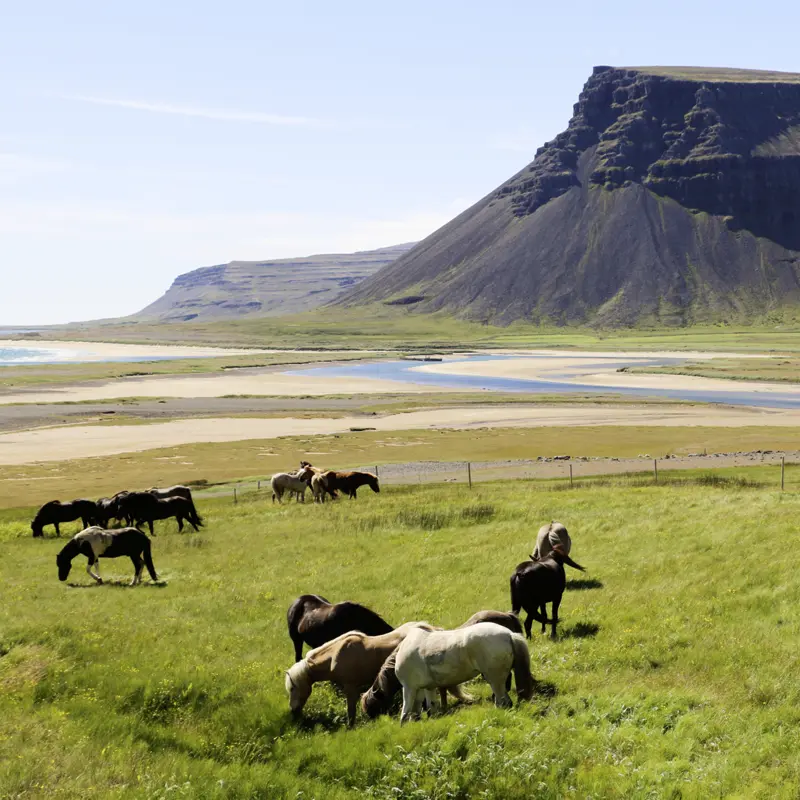 Isländer sind reich beschenkt von der Natur: Im Sommer weiden die Schafe in den Bergen, als wetterfeste Wolleproduzenten. In einer Manufaktur in Hvammstangi erfahren wir mehr über die Verarbeitung: Wolle waschen, kämmen, spinnen und filzen. Danach marschieren wir im Naturschutzgebiet am Fluss Blanda entlang (Gehzeit ca. 2 Std., leicht), wo jedes Jahr Tausende von Lachsen in die Netze gehen. Noch auf einen Sprung in die Torfkirche Vidimyri: Giebel aus Holz, Wände aus Torf, Dach aus Gras. Ein kompostierbares Gebäude? Fortschrittlich! Zwei Übernachtungen in Akureyri. (F, A)