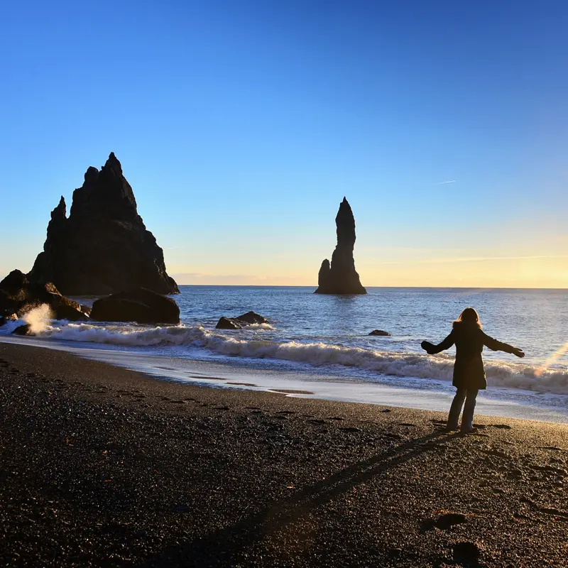 Die Idee dieser Reise: Umrunden Sie Island im Mietwagen auf der Ringstraße. Auf der vorgeschlagenen Route unserer Länderexpertin sind Sie auf eigene Faust unterwegs. Die Saison ist kurz und die Nachfrage groß – planen Sie rechtzeitig! 1340 km, um die Atlantikinsel herum. Schlammlöcher und GLETSCHERZUNGEN, malerische FJORDE und tosende Wasserfälle, VULKANLANDSCHAFTEN, in denen massenhaft violettblaue Lupinen blühen, Weiden mit den weltberühmten Islandponys und das Meer. Stoppen Sie an der Gletscherlagune JÖKULSARLON. Auf den Eisschollen treiben Robben, die sich die Sonne auf den Pelz brennen lassen. Von einem Einheimischen erfahren Sie, dass der nahe gelegene Strand "Diamond Beach" heißt – wegen der Millionen glasklaren Eisbrocken, die wie glitzernde Diamanten über den schwarzen Lavasand verstreut sind. Ich habe selten einen schöneren Ort gesehen! Apropos Eis: Das beste Speiseeis gibt es im Gasthof Brunnholl in Höfn, direkt vom Bauern.