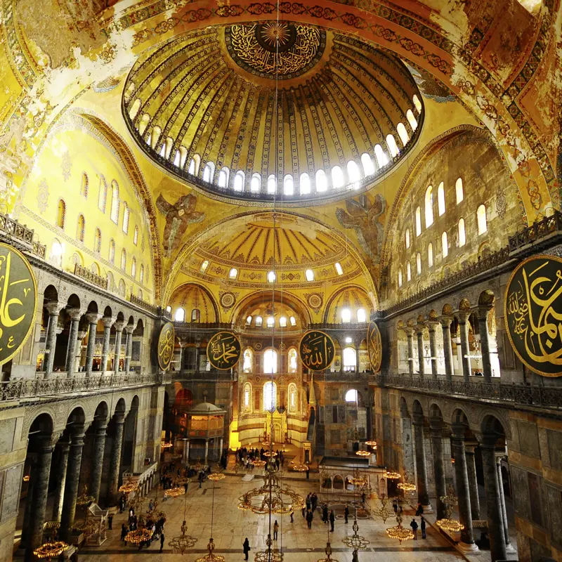 Wie wurde vor 1500 Jahren das damals größte Bauwerk der Welt in nur fünf Jahren geplant und errichtet? Bei der Besichtigung erzählt uns der Scout vom Bau der Hagia Sophia, dem Meisterstück des oströmischen Reiches. In der alten Zisterne eröffnet sich uns eine unterirdische Welt und wir entdecken, wie perfekt das ganze Wasserversorgungssystem der Stadt bereits im sechsten Jahrhundert funktionierte. Wir bewundern die elegante Bauweise des Wasserreservoirs, das schon Sean Connery und Tom Hanks als Filmkulisse diente, bevor wir in die engen Gassen des kuppelüberdachten Großen Basars eintauchen. In einem historischen Kaffeehaus lassen wir uns einen türkischen Kaffee schmecken. Weiter geht es zum Spaziergang im Stadtteil Pera: Jugendstilhäuser, Nostalgiebahn, Çiçek-Passage und das Haus von Franz Liszt – hier schlägt Tag und Nacht das Herz der Stadt. Vielleicht locken Sie auch die Spezialitäten des Halva-Meisters Koska oder die Süßspeisen von Ali Muhittin Haci Bekir, Lieferant des Sultans und des britischen Königshauses? F