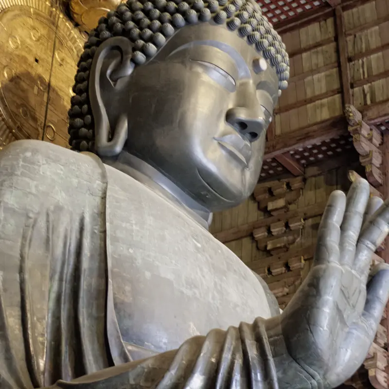 Wir nehmen den Zug nach Nara. Für Schulklassen scheint der Besuch ein Teil des Unterrichts zu sein. Uns Langnasen finden die Kids mindestens genauso interessant wie den gigantischen Todai-Tempel°. Der ist schon aus der Ferne imposant, aber der riesige Bronzebuddha im Inneren raubt uns dann doch den Atem. Wer passt durch die legendäre Öffnung in der Größe von Buddhas Nasenloch? Als Belohnung winkt ewige Erleuchtung ... Anschließend Freizeit und Gelegenheit zum Spaziergang durch den Nara-Park mit vielen weiteren Tempeln und Museen. Aber Vorsicht vor den nimmersatten und ganz schön frechen Rehen! Am Nachmittag treffen wir uns am Bahnhof wieder und fahren nach Kyoto, wo wir für die folgenden zwei Nächte einchecken. (F)
