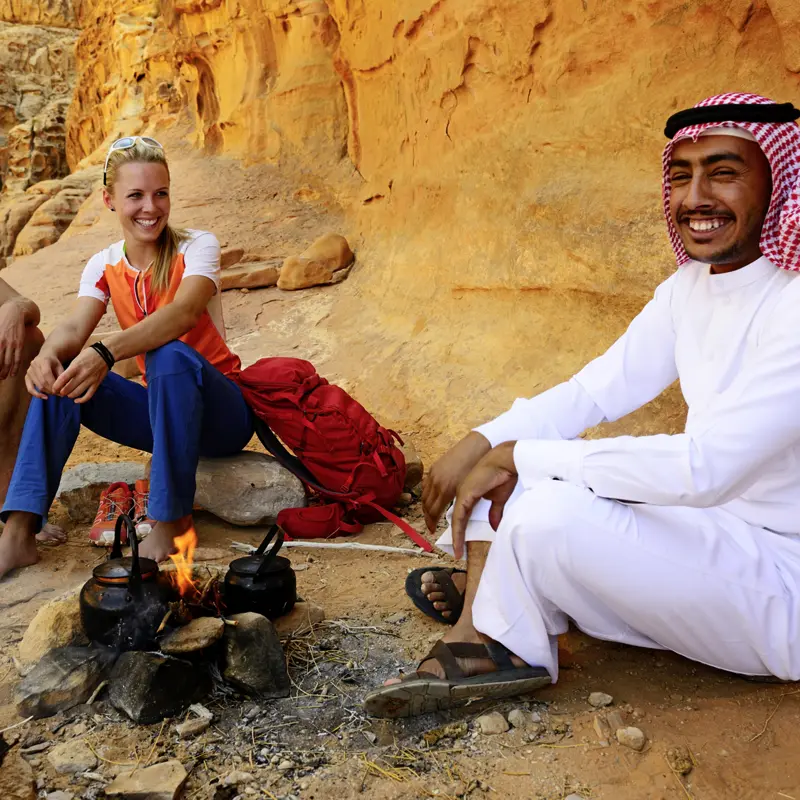 Nach einem gemütlichen Start in den Tag brechen Sie auf in Richtung Wadi Ram. Im Jeep holpern Sie mehrere Stunden durch das Wüstental, Schauplatz des Filmklassikers "Lawrence von Arabien". Orange, Rot und ein Hauch von Schokolade – das sind die Farben des Wadi Ram bei Sonnenuntergang. Übernachtung in einem einfachen Wüstencamp.
