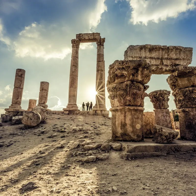 Im Privatwagen fahren Sie nach Adschlun mit der mächtigen Burg Qalat ar-Rabad. Dann wartet ein besonderes Highlight: Gerasa. Die Ruinen aus der Römerzeit sind so gut erhalten, dass man sich leicht vorstellen kann, wie die Menschen hier vor 2000 Jahren gelebt haben. Am Nachmittag zurück in Amman. Dort erkunden Sie mit Ihrem Scout die moderne jordanische Hauptstadt: Zitadelle, Nationalmuseum und das römische Stadtzentrum.