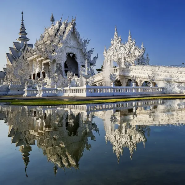 Ihr Fahrer und Privatwagen erwarten Sie am Flughafen von Chiang Rai (tagesaktuelle Flugpreise auf Anfrage). Transfer zu Ihrem Hotel. Falls es die Zeit erlaubt, sehen Sie noch den wohl ungewöhnlichsten Tempel Thailands: den Wat Rong Khun. Die Sonnenstrahlen spiegeln sich in den unzähligen Mosaiksteinen und werfen tolle Lichtreflexe auf die Besucher.