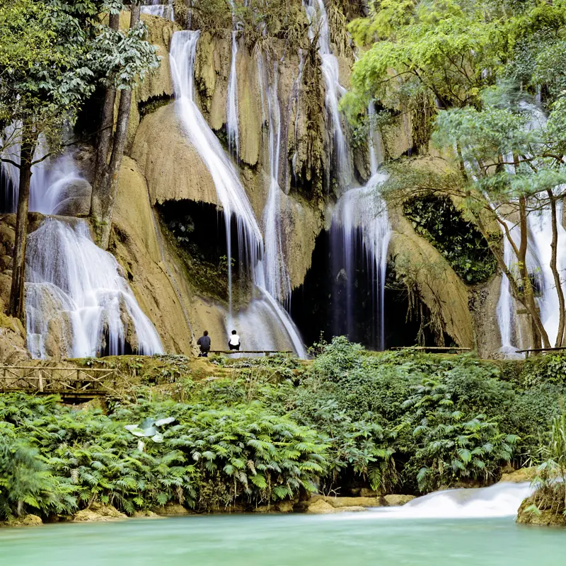 Morgens sehen Sie, wie die Mönche ihre Opfergaben empfangen. Anschließend ein toller Blick vom Berg Phousi: die alte Königsstadt bei Sonnenaufgang. Zeit zum Frühstücken und Entspannen im Hotel. Am Nachmittag Ausflug zu dem malerischen Wasserfall Tat Kuang Si und Gelegenheit zu einem erfrischenden Bad in den türkis schimmernden Becken. Auf der Rückfahrt am Wegesrand Dörfer ethnischer Minderheiten der Hmong und Lao Loum.