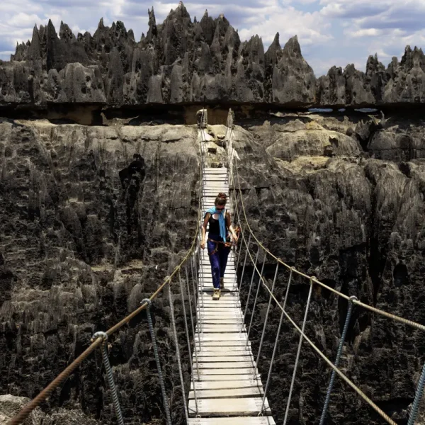 Einen ganzen Tag im Bemaraha-Nationalpark (UNESCO-Welterbe) unterwegs. Das Plateau der Tsingy de Bemaraha ist bekannt durch die spitzen Karstfelsen, die Wasser und Wind geformt haben. Kein Wunder: "Tsingy" bedeutet auf Madagassisch Nadel!
