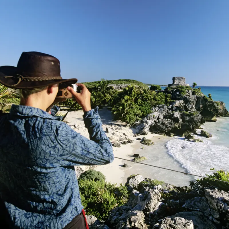 Weiterfahrt nach Cobá. Mit dem Fahrrad erkunden Sie die weitläufige Anlage. Stets das Ziel vor Augen: die Pyramide Nohoch Mul. Am Nachmittag lassen Sie Ihren Blick von der Steilküste über das Karibische Meer schweifen. Tulum - ein magischer Ort! Weiter zum Badehotel.