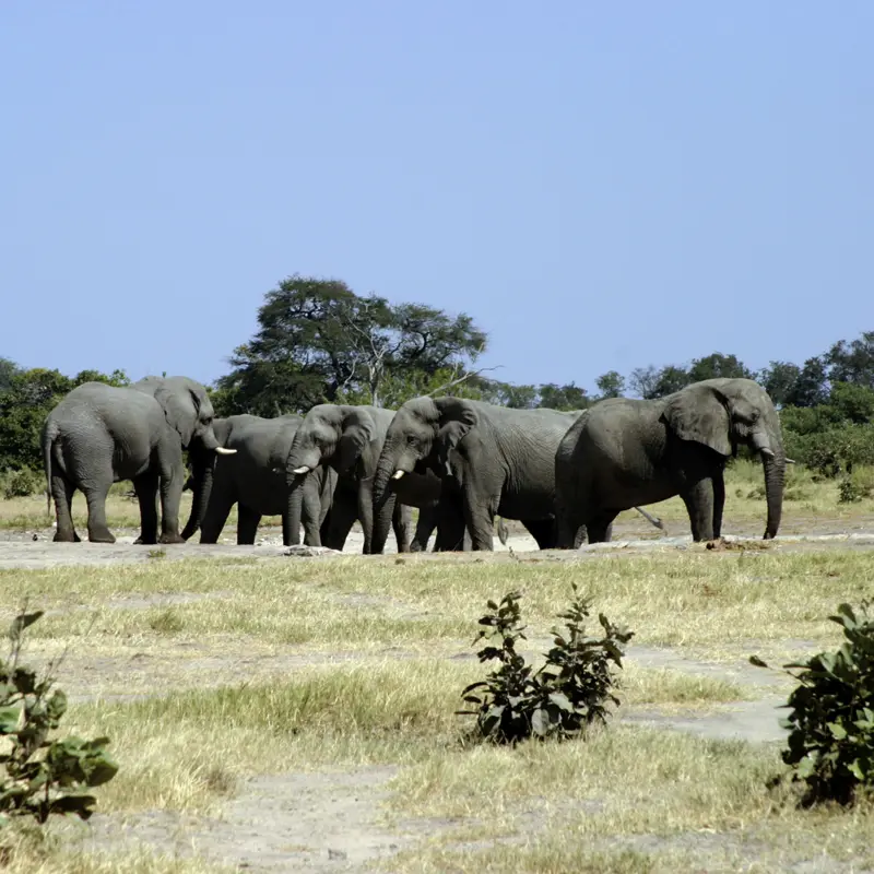 Krasser Kontrast! Wir verlassen Maun, der Scout lenkt das Fahrzeug zu den gleißend weißen Salzpfannen und weiter nach Nata. Besuch einer artenreichen Vogelwelt: Pelikane, Flamingos, Adler finden Schutz im Nata Bird Sanctuary. Es wird heute nicht bei einem Sundowner in der Lodge bleiben. Und wenn uns vielleicht Galagos - Buschbabys genannt - vor den Safarizelten einen Besuch abstatten, verlieben sicher auch wir uns in die niedlichen Äffchen mit den riesigen Augen. (F, A)