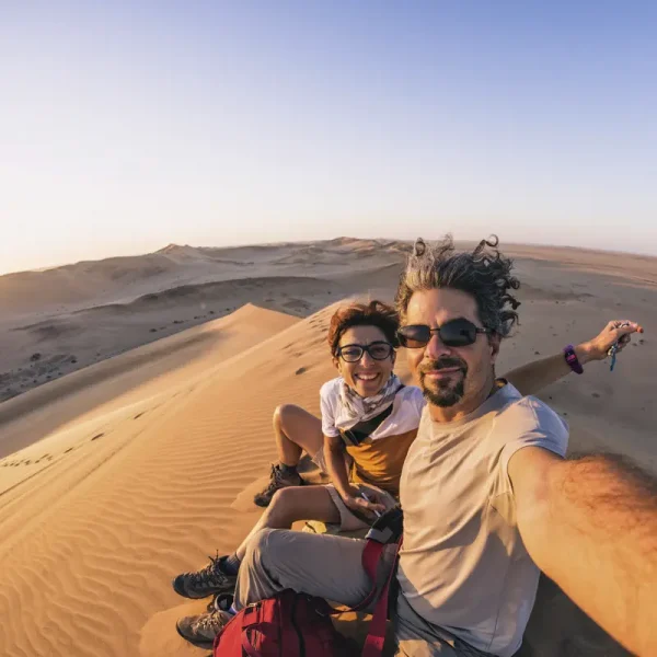 Fahrt nach Walvis Bay. Trip nach Sandwich Harbour (gemeinsam mit anderen Gästen): Düne trifft Ozean. Eine Lagune mit riesigen Vogelkolonien, gelbe Sanddünen und spektakuläre Aussichten. Sie gehen mit Ihrem Scout auf die Suche und finden vielleicht eine Tanzende Weiße Dame, durchsichtige Wüstengeckos oder eine Nara-Pflanze.