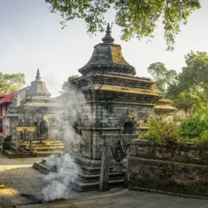 Am Vormittag mit Scout im Privatwagen und zu Fuß auf Citytour. In Bodnath, auch Klein-Tibet genannt, umrunden buddhistische Pilger die Gebetsmühlen des Stupa. Weiter zum Hindutempel Pashupatinath mit seinen Ghats, den Feuerbestattungsstätten der Hindus, am heiligen Fluss Bagmati. Dann noch zum Swayambhunath-Stupa. Am Durbar Square dichtes Gedränge um den Königspalast, die Tempel und Pagoden. Mit einer Rikscha geht es landestypisch in den Stadtteil Thamel. Unterwegs passieren Sie den traditionellen Markt von Indra Chowk.