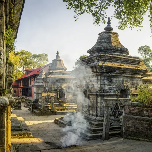 Am Vormittag mit Scout im Privatwagen und zu Fuß auf Citytour. In Bodnath, auch Klein-Tibet genannt, umrunden buddhistische Pilger die Gebetsmühlen des Stupa. Weiter zum Hindutempel Pashupatinath mit seinen Ghats, den Feuerbestattungsstätten der Hindus, am heiligen Fluss Bagmati. Dann noch zum Swayambhunath-Stupa. Am Durbar Square dichtes Gedränge um den Königspalast, die Tempel und Pagoden. Mit einer Rikscha geht es landestypisch in den Stadtteil Thamel. Unterwegs passieren Sie den traditionellen Markt von Indra Chowk. (F)