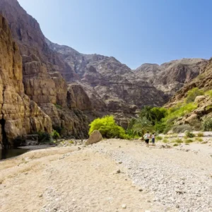 Über Jabrin geht's zur Oase Bahla. Hinter die Kulissen des omanischen Alltags blicken Sie im Dorf Al-Hamra. Am Dschebel Schems, dem "Grand Canyon" des Oman, spazieren Sie am Rand des Wadi Nakhr unterhalb des höchsten Berges des Landes entlang. Nach einem Stopp am Wadi Al-Ayn geht's zurück zu Ihrem Hotel.