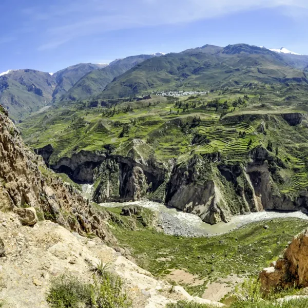 Am frühen Morgen Fahrt in den Colca-Canyon, der mit bis zu 3400 m Tiefe noch eindrucksvoller ist als der Grand Canyon. Auf dem Weg dorthin überqueren Sie den 4870 m hohen Pass von Patapampa. Erkundung der ursprünglichen Dörfer. Bewundern Sie die faszinierende Bergwelt und die uralten Terrassenanlagen, Meisterwerke aus vorinkaischer Zeit.
