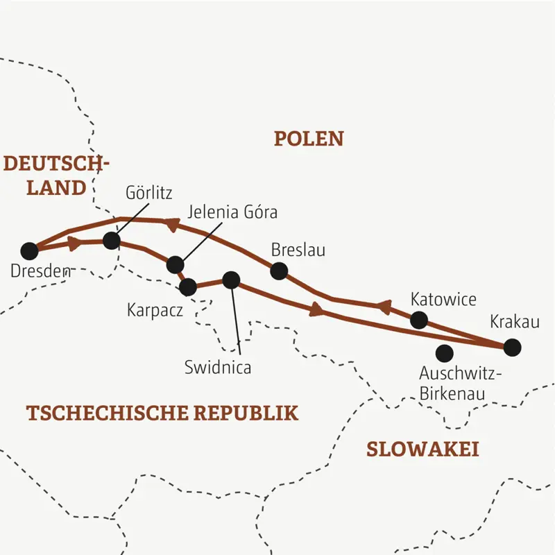 Die schlesische Hauptstadt Breslau liegt an der Oder – genauer gesagt: auf zwölf Inseln. Warum die Einwohner gern vom "Venedig Polens" sprechen, wird spätestens beim Anblick der unzähligen Kanäle mit über 100 Brücken klar. Wir schlendern durch die engen Altstadtgassen zum Salzmarkt und erkunden die Dominsel, die Universität und den Ring mit dem spätgotischen Rathaus und den beiden Pfarrkirchen St. Elisabeth und Maria Magdalena. Nachmittags proben wir den Zwergenaufstand: Etwa 1000 bronzene Zwergfiguren verteilen sich in Breslaus Altstadt. Sie klettern Laternenpfähle empor, sitzen auf Fensterbänken oder lümmeln auf Plätzen herum. Wie viele der freundlichen Zeitgenossen entdecken Sie auf Ihrem Stadtbummel? Unser Scout hält zur Unterstützung bei der Suche einen "zwergischen" Stadtplan für uns bereit. Beim Abschiedsabendessen genießen wir noch einmal lokale Spezialitäten und lassen die vergangenen Tage Revue passieren. F/A