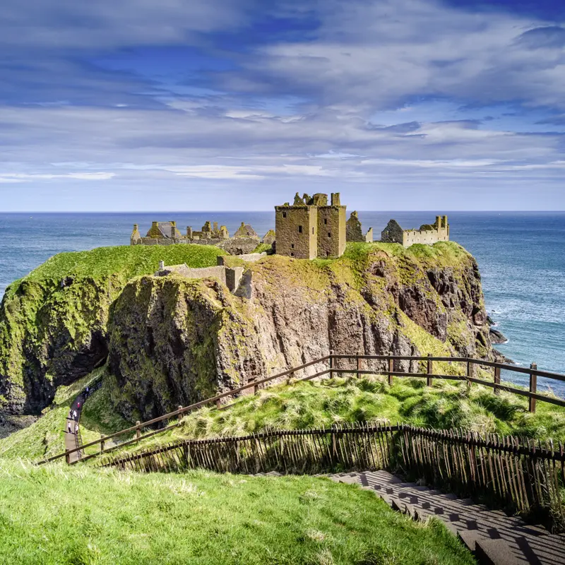 Langsam schließt sich der Kreis. Auf dem Weg nach Süden bewundern wir Dunnottar Castle, das spektakulär auf einem Felsvorsprung hoch über dem Meer liegt. Über die Coastal Route, eine der schönsten Straßen des Landes, fahren wir in die Hafenstadt Dundee und weiter nach St. Andrews mit der ältesten Eliteuniversität des Landes. Auch Prince William und Herzogin Kate gehören zu den Absolventen der Hochschule. Die nächsten beiden Nächte verbringen wir im Raum Edinburgh. F