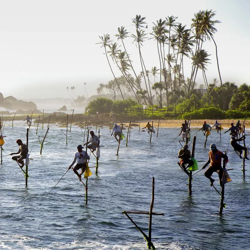 Am Morgen geht es auf die Pirsch. Im Jeep holpern Sie durch die savannenartige Landschaft. Ideale Bedingungen, um Elefanten, Krokodile, Pfauen und mit etwas Glück vielleicht sogar Bären und Leoparden aus der Nähe zu sehen. Traumstrände, Buchten und Palmenhaine säumen die Küstenstraße zu Ihrem Badehotel. In Weligama sitzen die Angler auf Stelzen. Am Holländischen Fort in Galle haben sich früher die Gewürzpiraten die Zähne ausgebissen.