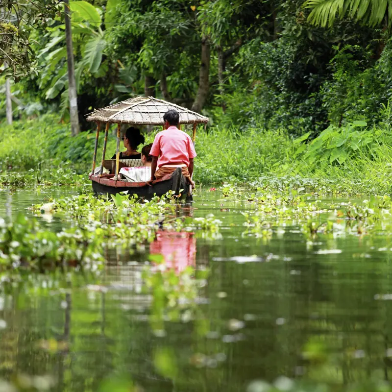 Durch die Berge Kurve für Kurve Richtung Indischer Ozean. Mittendrin erwartet uns Familie Zagharia in ihrem Homestay. Freundliches "Namaste", Zimmer beziehen und gleich aufs Wasser. In Kanus staken uns starke Arme durch die Backwaters–Kanäle, die Waschsalon, Spielplatz, Supermarkt ersetzen. Dann Abendessen bei unserer Gastfamilie: Schaffen wir's wie die Locals, den Reis mit der rechten Hand in den Mund zu schnippen? (F, M, A)