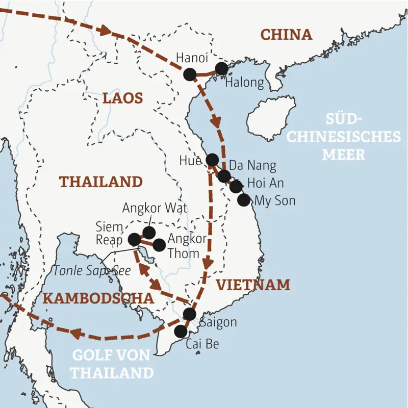 - Nicht enthaltene Extras: Zusätzliche Ausflüge (Ausflug My Son 25 €) sowie Veranstaltungen, die gegen Mehrpreis ausgeschrieben sind bzw. als Gelegenheit, Möglichkeit oder Wunsch beschrieben sind.