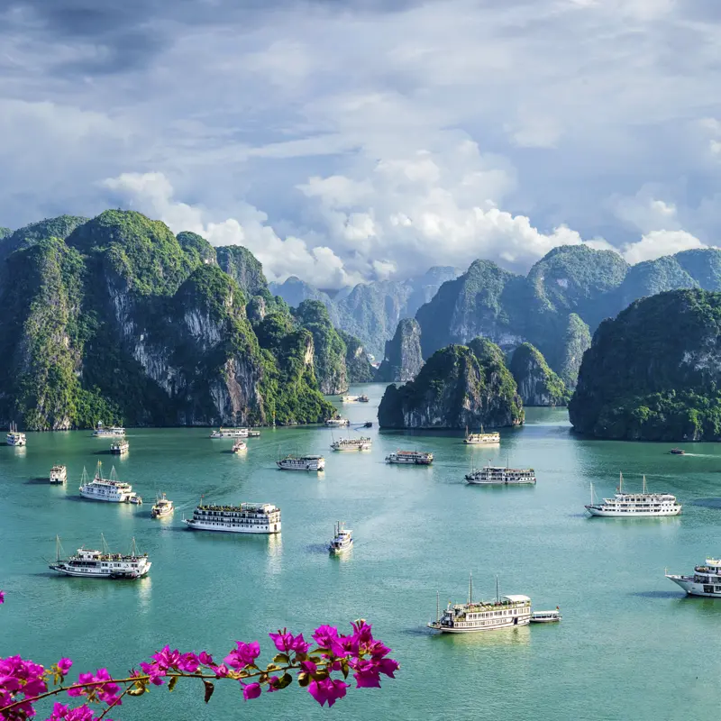 Fühlen Sie sich in der smaragdgrünen Halongbucht wie einer der Piraten, die hier früher zwischen den unzähligen Zauberfelsen und Höhlen Unterschlupf gesucht haben. Ein faszinierender Kontrast zu dieser bizarren Landschaft sind die Hightech-Fassaden und knatternden Mopeds in Saigon. Im Handelsstädtchen Hoi An bummeln Sie durch die Gassen der Schneider und Kunsthandwerker. Auf den Langstrecken fliegen Sie bequem in der Premium Economy-Class der Vietnam Airlines.