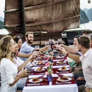 Fahrt nach Halong. Bizarr verkarstete Felsnadeln und über 3000 Kalksteininseln ragen aus dem kristallklaren Wasser – die Halongbucht gehört zu den schönsten Landschaften Asiens. Auf einer Dschunke kreuzen wir zwischen den Inseln. Mittag- und Abendessen sowie Übernachtung an Bord. F/M/A