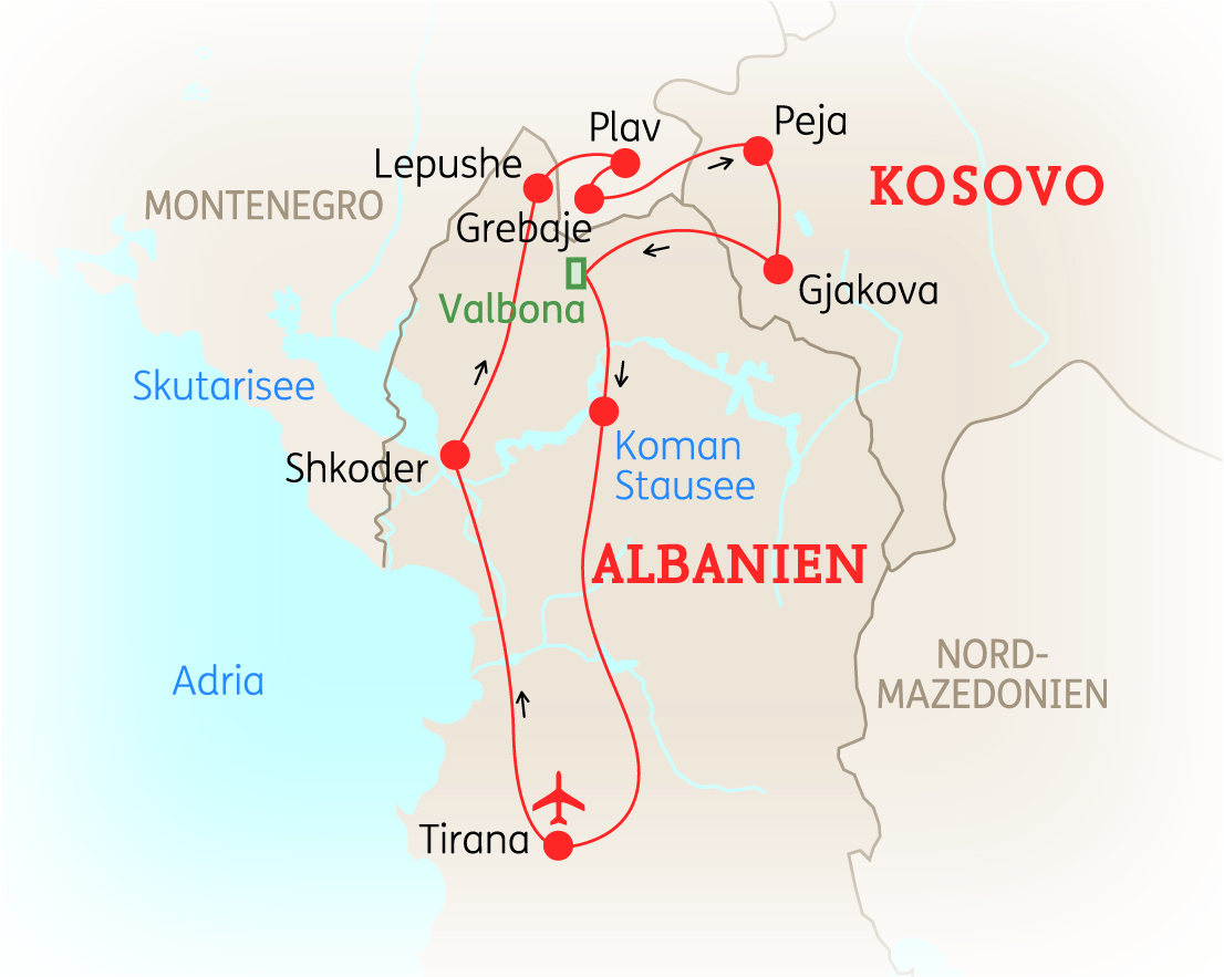 ALBANIEN - Schroffe Bergzüge, grüne Wiesen und wilde Blumen zeichnen ein idyllisches Bild im Norden Albaniens. Trotz seiner Vorzüge ist dieses Gebiet für Reisende noch weitestgehend unbekannt und beinahe ein Insidertipp. Auf Ihrer 8-tägigen Reise entdecken Sie bei mehreren Wanderungen die Naturschönheit und Unberührtheit Nordalbaniens sowie Montenegros. Dies wird gepaart mit UNESCO Weltkulturerbestätten im Kosovo und der Gastfreundlichkeit der Menschen vor Ort.