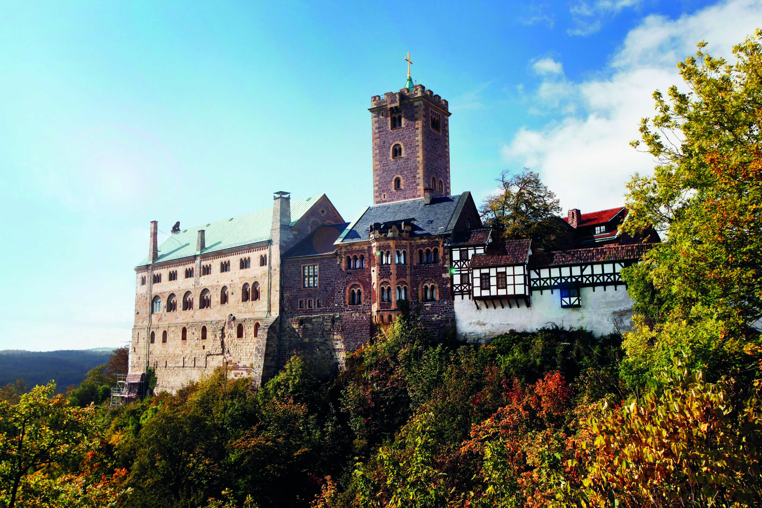 Mit der Bahn reisen Sie nach Eisenach. Hier führt Sie das Johann Sebastian Bach-Museum auf eine musikalische Reise zum wohl berühmtesten Sohn der Stadt. Ein kleines Konzert historischer Musikinstrumente lässt die Welt der Bachzeit erklingen. Noch ein weiterer Prominenter hat in der Stadt gewirkt, denn hoch über der Stadt, auf der Wartburg, übersetzte Martin Luther das Neue Testament und fand Zuflucht vor den Häschern der Gegenreformation. Die Geschichte der imposanten Burganlage reicht weit zurück. Bereits im 12. Jahrhundert gründeten hier die einflussreichen Ludowinger ihre Residenz. Auch die Wundergeschichten der Heiligen Elisabeth waren hier zu Hause, die ihr kurzes Leben den Armen und Kranken widmete. Im 19. Jahrhundert wurde die Burganlage als nationales Baudenkmal wiederentdeckt. (F/A)