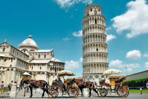 Unweit der Küste liegt die Stadt Pisa, welche Sie bequem mit dem Zug erreichen. Freuen Sie sich auf den berühmten Schiefen Turm, der auf dem strahlend weißen Campo dei Miracoli, dem „Platz der Wunder“, zu finden ist. Daneben staunen Sie u.a. über den Dom Santa Maria Assunta, das Baptisterium und den Camposanto, einen marmorummauerten Monumentalfriedhof. Im Gegensatz hierzu steht die moderne Innenstadt Pisas, die besonders durch die zahlreichen Studenten geprägt wird. (F)