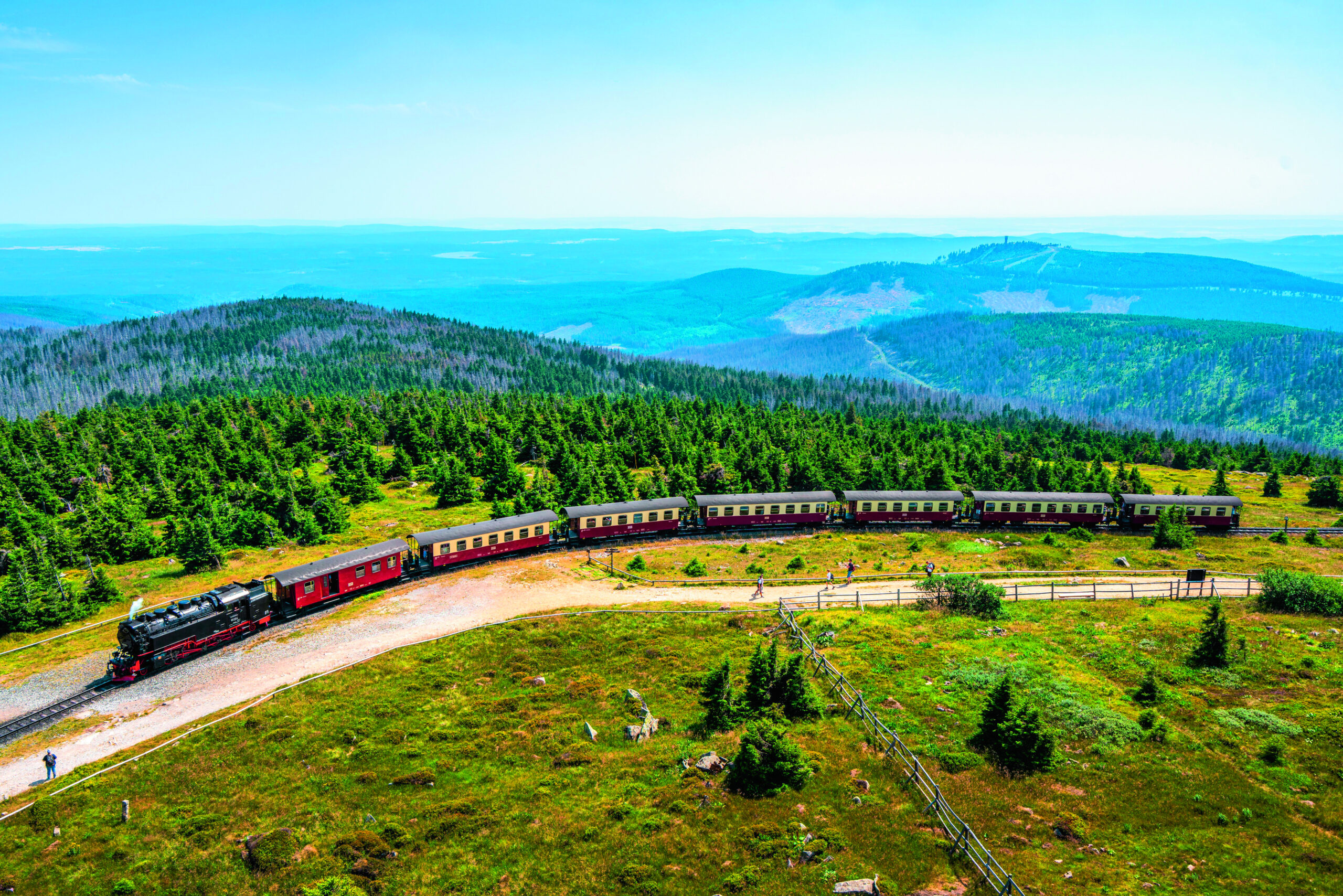 Bei einer Wanderreise durch den Harz darf natürlich eine Besteigung des berühmten Brockens nicht fehlen. Volkstümlich immer noch als „Blocksberg“ bekannt, ist der Brocken mit seinen 1.141 Metern der höchste Berg im Harz. Sie erklimmen heute den schönsten Weg hinauf zum Brocken. Schon von Weitem aus ist der Berg mit seiner kahlen Kuppe und der Wetterstation auf dem Gipfel zu erkennen. Von der Bergspitze aus gewährt sich Ihnen eine wunderbare Aussicht auf die Umgebung. Bei guter Sicht können Sie sogar den Großen Inselberg in Thüringen in der Ferne sehen. Von Ihrer Reiseleitung erfahren Sie spannende Informationen über die Mythen und Sagen rund um den Brocken. Über den Goetheweg machen Sie sich im Anschluss wieder auf den Rückweg. Mit etwas Glück begegnet Ihnen auf dem Weg eine der historischen Dampflokomotiven – ein wirklich eindrucksvolles Fotomotiv mit ihren wehenden Rauchfahnen (moderat, 18 km, ca. 5 Std., +/-860 Hm). (F/A)